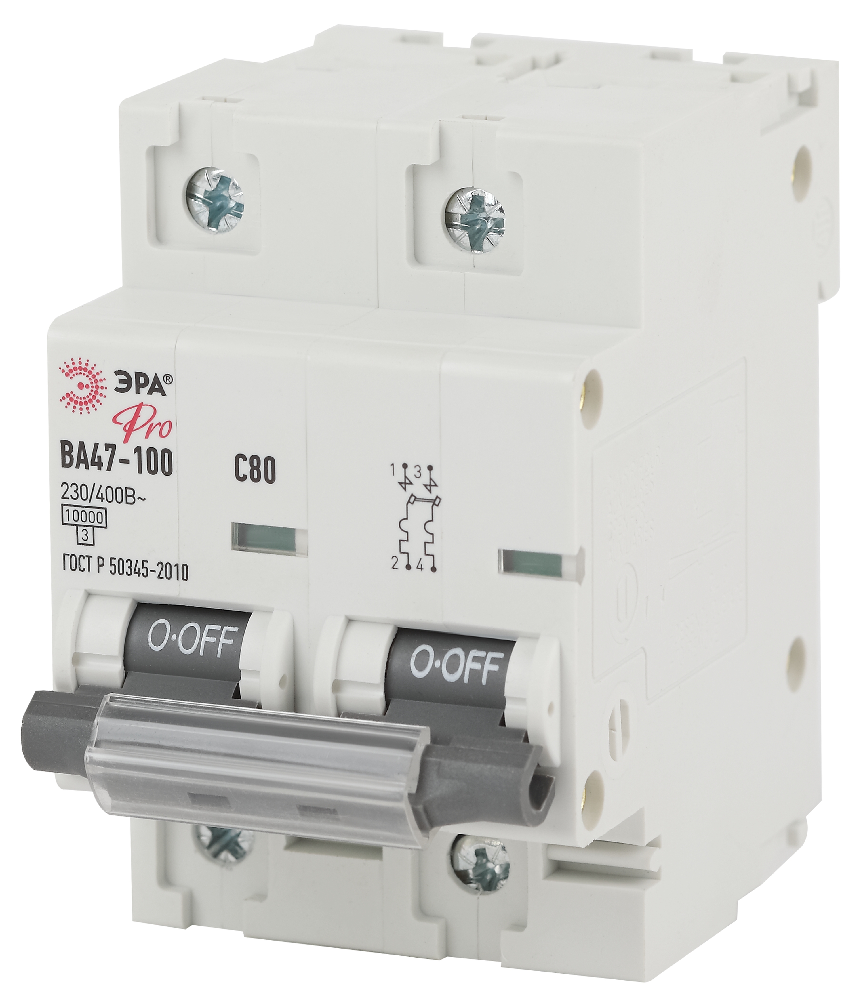 Выключатель автоматический 2-полюсный (2P) 80А хар. C ЭРА (Энергия света) Pro