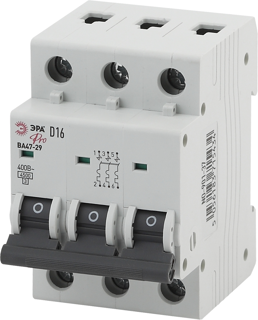 Выключатель автоматический 3-полюсный (3P) 16А хар. D 4.5кА ЭРА (Энергия света) _