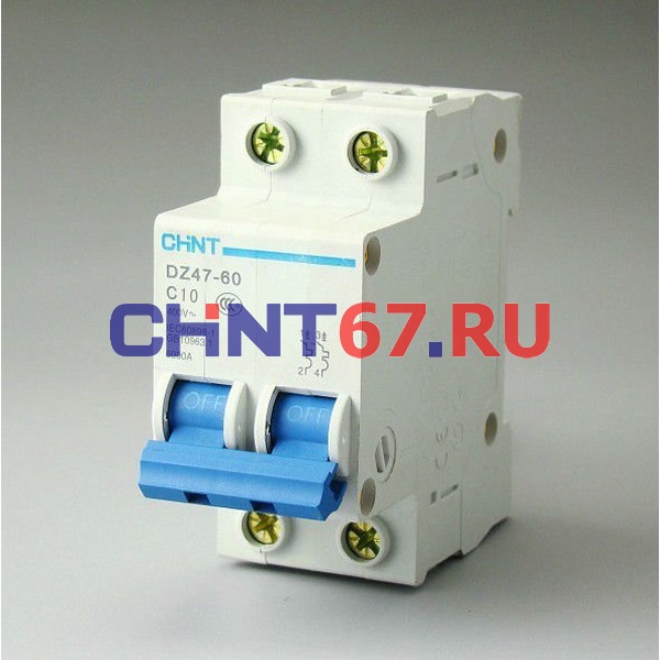 Выключатель автоматический DZ47-60 2P 10A С 4.5kA CHINT 6/90