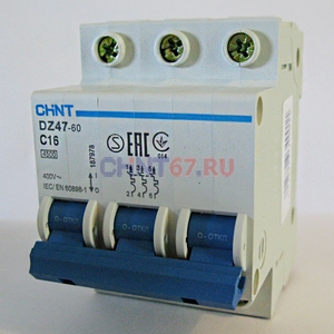 Выключатель автоматический DZ47-60 3P 16A С 4.5kA CHINT 4/60