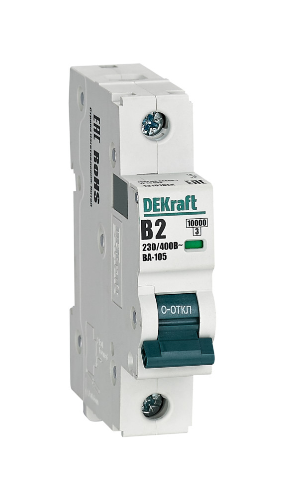 Автоматический выключатель серии ВА-105 DEKraft; 1P; ном. ток 2 А; характеристика В; откл. способность 10 кА; ширина модуля 18мм. Аппараты имеют механизм мгновенной коммутации, 6 монолитных заклепок, которые повышают прочность корпуса. Боковые каналы охлаждения повышают стабильность работы при высоких температурах окружающей среды. Есть возможность установки дополнительных аксессуаров с левой стороны устройства. Аппарат на 100% совместим с корпусами и оболочками DEKraft и Systeme Electric.