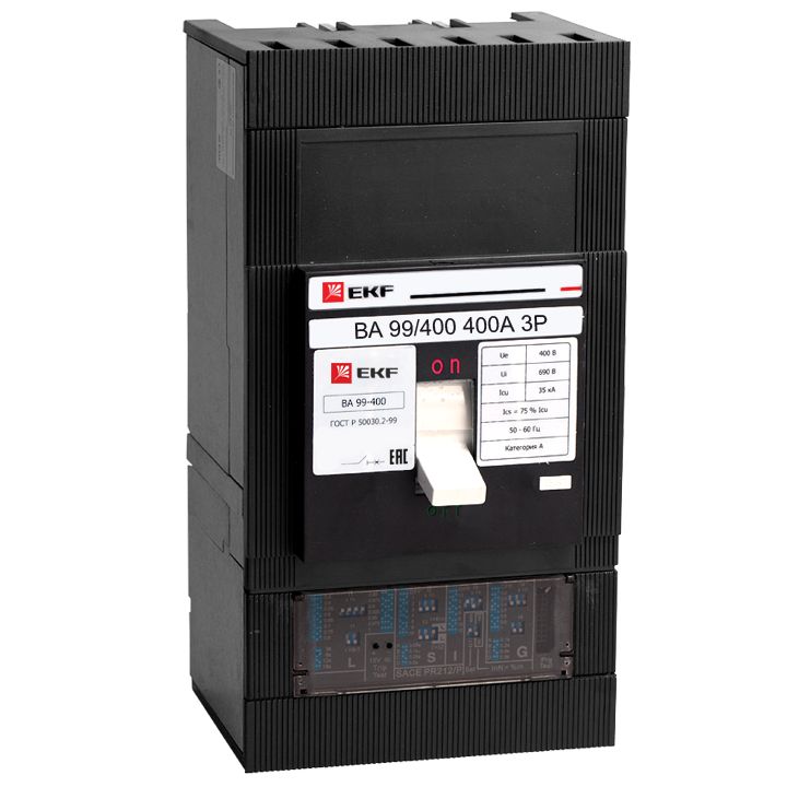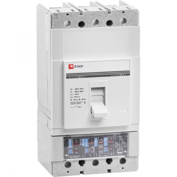 Выключатель ВА-99 выполнен в виде моноблока и состоит из основания и крышки с фальшпанелью, в которой имеется окно для рукоятки управления и толкатель кнопки «Тест» - проверки механизма отключения выключателя. Основание выполнено из термостойкой пластмассы, не поддерживающей горение и являющейся несущей конструкцией для присоединительных зажимов, неподвижных и подвижных контактов с системой дугогашения, механизма управления, блока защиты от сверхтоков. Крышка закрывает все подвижные элементы механизма управления и внутренние токоведущие части.