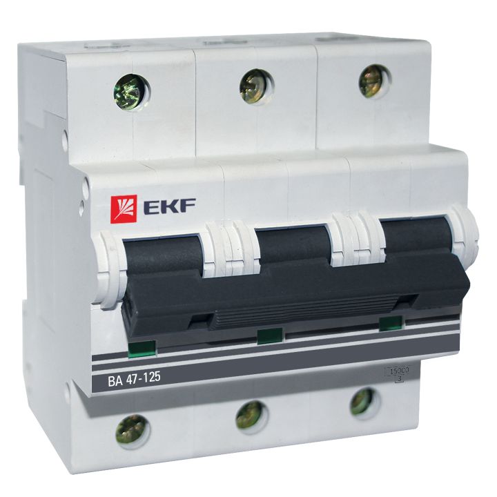 Автоматические выключатели ВА 47-125 EKF PROxima благодаря высокой предельной коммутационной способности 15 кА могут использоваться вместо силовых автоматических выключателей. Выключатели имеют ширину корпуса 1,5 модуля (27 мм), производятся с номинальными токами до 125 А. Для надежного гашения дуги используется двойной разрыв контактов и две дугогасительные камеры. Оптимальная токопроводимость обеспечивается серебросодержащей контактной группой.