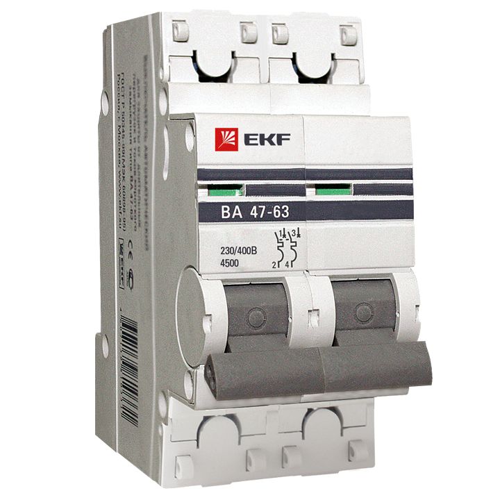 Автоматические выключатели ВА 47-63 4,5 кА EKF PROxima являются механическими коммутационными аппаратами и соответствуют ГОСТ Р50345-2010. Особенностью данной серии выключателей является усовершенствованная конструкция. В выключателях имеются пластиковые крышки, закрывающие доступ к винтовому зажиму и служащие для опломбирования выключателей, что исключает несанкционированный доступ к проводникам. Корпус выключателей усилен дополнительными заклепками для устранения эффекта расхождения корпуса. Выключатели оборудованы удобной ручкой управления, обеспечивающей надежное оперирование изделиями. На лицевой панели выключателей имеется цветовой индикатор состояния. Конструкция установочного зажима обеспечивает свободную установку выключателя на DIN-рейку.
