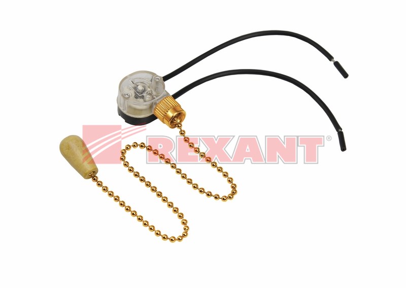 Выключатель для бра с цепочкой золото деревянный наконечник провод 220V 3А REXANT /1