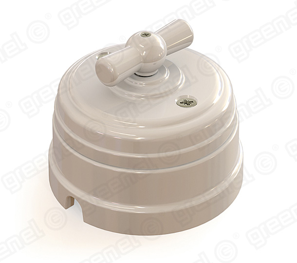 Двухклавишный фарфоровый ретро поворотный выключатель на 4 положения для скрытой и открытой проводки, для управления с 2 группами освещения. Размер: D70х60мм ; Характеристики: 10А, 250В, IP 20
