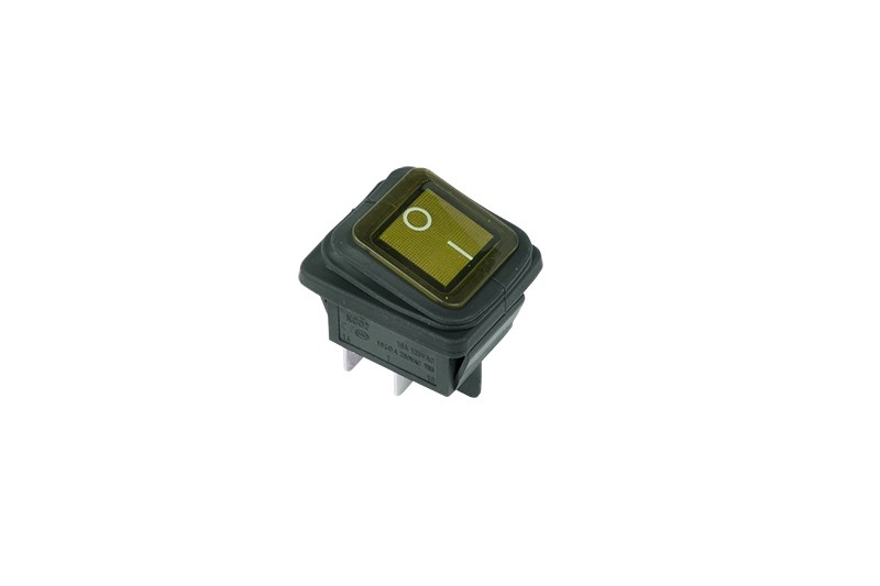 Клавиша желтого цвета оснащена подсветкой, которая помогает отслеживать рабочее состояние прибора и делает выключатель заметным в темноте.