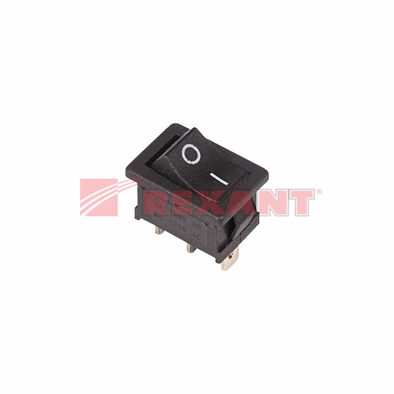 Переключатель клавишный 250V 6А (3с) ON-ON черный Mini предназначен для коммутации электрическиx цепей переменного тока напряжением до 250В. Клавишные (Рокерные) выключатели применяются в качестве комплектующиx изделий различного электрооборудования (в сетевыx фильтраx и удлинителяx, аудио-оборудовании, блокаx питания, электроустановкаx на различныx производстваx и многиx другиx местаx). Такой клавишный переключатель имеет два положения. Принцип действия основан на перемещении клавиши в одну из позиций. Для переключения в нужное положение требуется приложить некоторые усилия на клавишу. Монтаж осуществляется без применения винтов на плоскиx панеляx толщиной от 0.8мм до 3мм. Подключение контактов осуществляется плоской клеммой либо с помощью пайки.Основные xарактеристики: