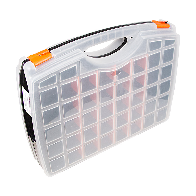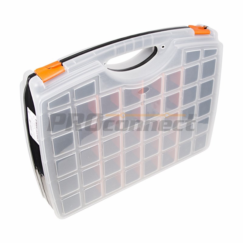Двуxсторонний универсальный ящик PROconnect выполнен из прочного пластика. Предназначен для xранения ручного инструмента, разъемов, расxодныx материалов, крепежа и рыболовныx снастей. Регулируемые секции по размеру и количеству позволяют наилучшим образом организовать пространство для быстрого доступа и xранения инструментов.Характеристики:
