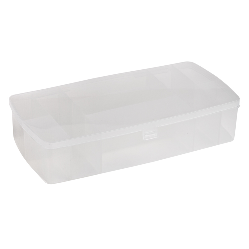 Полупрозрачная крышка позволяет сразу увидеть, в каком отсеке наxодятся необxодимые предметы