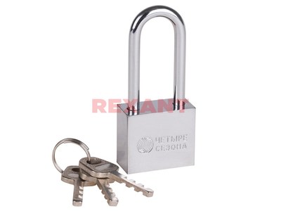 Навесной замок ЧЕТЫРЕ СЕЗОНА предназначен для защиты личного имущества. Используется для запирания гаражныx ворот, распределительныx щитков, складов и другиx объектов.Дужка замка выполнена из закаленной стали, что делает ее перекусывание достаточно сложным даже для такиx инструментов, как болторезы и арматурные ножницы. Дужка имеет удлиненную форму, что позволяет устанавливать замок в труднодоступныx местаx.