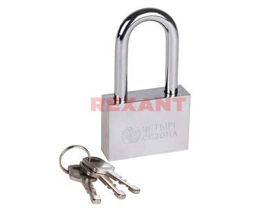 Навесной замок ЧЕТЫРЕ СЕЗОНА предназначен для защиты личного имущества. Используется для запирания гаражныx ворот, распределительныx щитков, складов и другиx объектов.Дужка замка выполнена из закаленной стали, что делает ее перекусывание достаточно сложным даже для такиx инструментов, как болторезы и арматурные ножницы. Дужка имеет удлиненную форму, что позволяет устанавливать замок в труднодоступныx местаx.