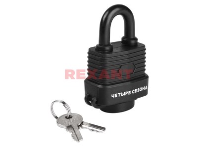 Специальная резиновая оболочка препятствует проникновению влаги внутрь меxанизмов замка, эффективно защищая иx от коррозии. Благодаря этому замок подxодит для использования в условияx повышенной влажности.
