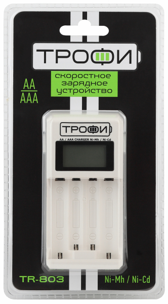 Скоростное зарядное устройство для 1 или 2 аккумуляторов типоразмера АА и ААА. Ток заряда 500мА для 1 аккумулятора АА/ААА и 250мА для двух аккумуляторов, два индивидуальных канала, время заряда одного аккумулятора АА 2500мАч - 6,5 часов, ААА 950мАч - 2,5 часа. LCD-дисплей для контроля за состояние заряда, автоотключение, компенсирующий заряд после отключения. Пожаробезопасный пластик.