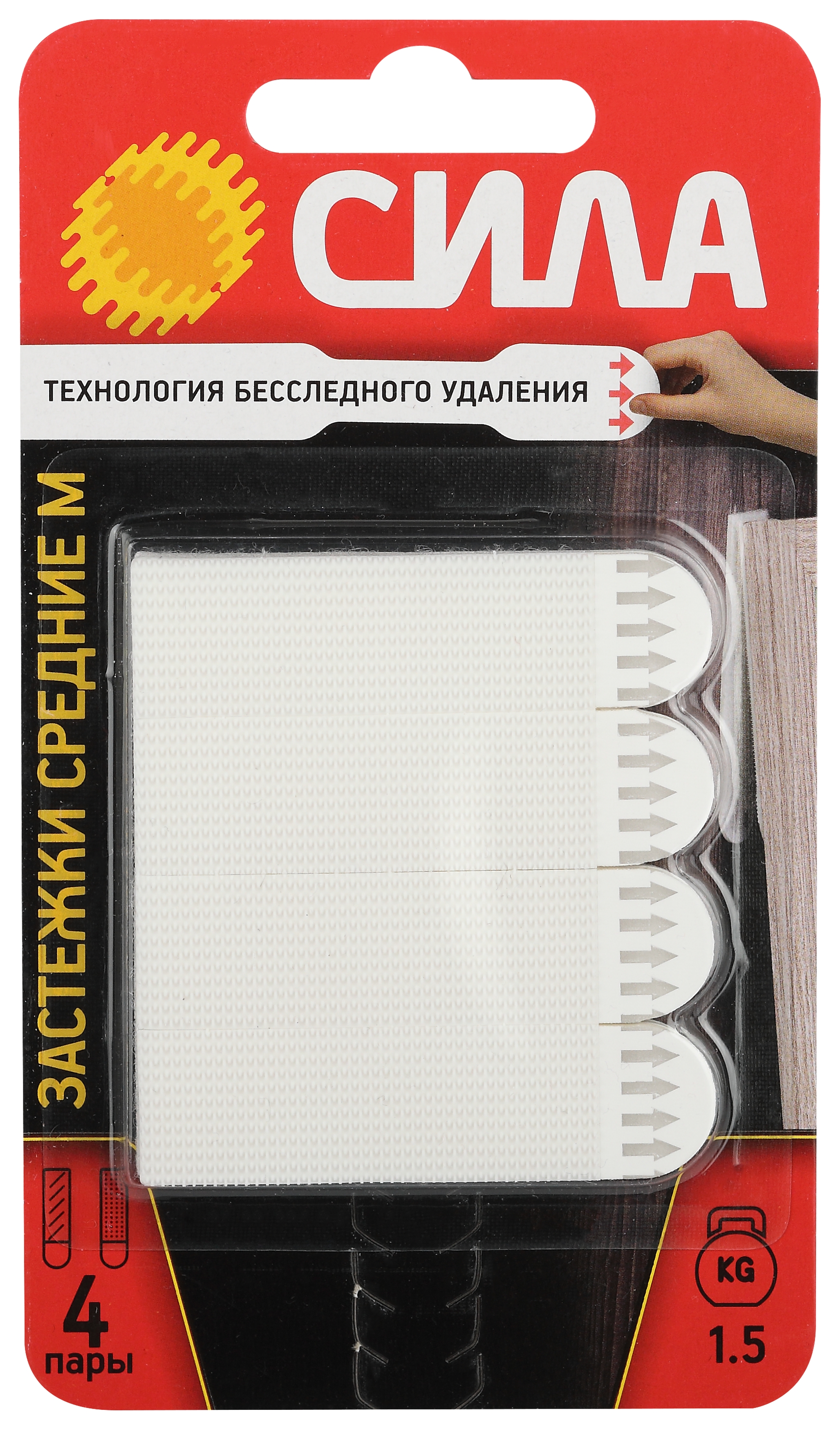Застежки СИЛА с технологией бесследного удаления созданы специально для рамок, картин, плакатов, настенных часов, домофонов, роутеров и других предметов. Они легко удаляются, не повреждая стен. Все предметы зафиксированные настенными застежкам, легко и без следа заменяются. Одна застежка фиксируется на стене, а другая - на раме. Максимальная нагрузка: 1,5 кг на 1 пару или 6 кг на упаковку
