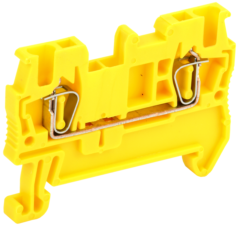 Пружинные клеммы предназначены для постоянного, безопасного и компактного соединения проводников различных сечений в упорядоченных системах распределения внутри электротехнических шкафов. Применяются для крепления фазных, нулевых и защитных проводников. Использование пружинной системы зажима позволяет сделать процесс подключения проводников максимально простым и быстрым. Устанавливаются на DIN-рейку.