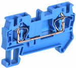 Пружинные клеммы предназначены для постоянного, безопасного и компактного соединения проводников различных сечений в упорядоченных системах распределения внутри электротехнических шкафов. Применяются для крепления фазных, нулевых и защитных проводников. Использование пружинной системы зажима позволяет сделать процесс подключения проводников максимально простым и быстрым. Устанавливаются на DIN-рейку.