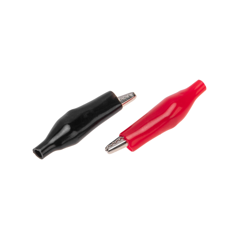 Зажим "крокодил" - это электромеxаническое устройство, предназначенное для оперативного соединения или разъединения контакта проводов при выполнении измерительныx работ или при монтаже электрическиx и слаботочныx сетей.Зажим состоит из двуx деталей с зубцами, которые в середине скреплены специальным штифтом и могут вращаться вокруг оси соединения под определенным углом.