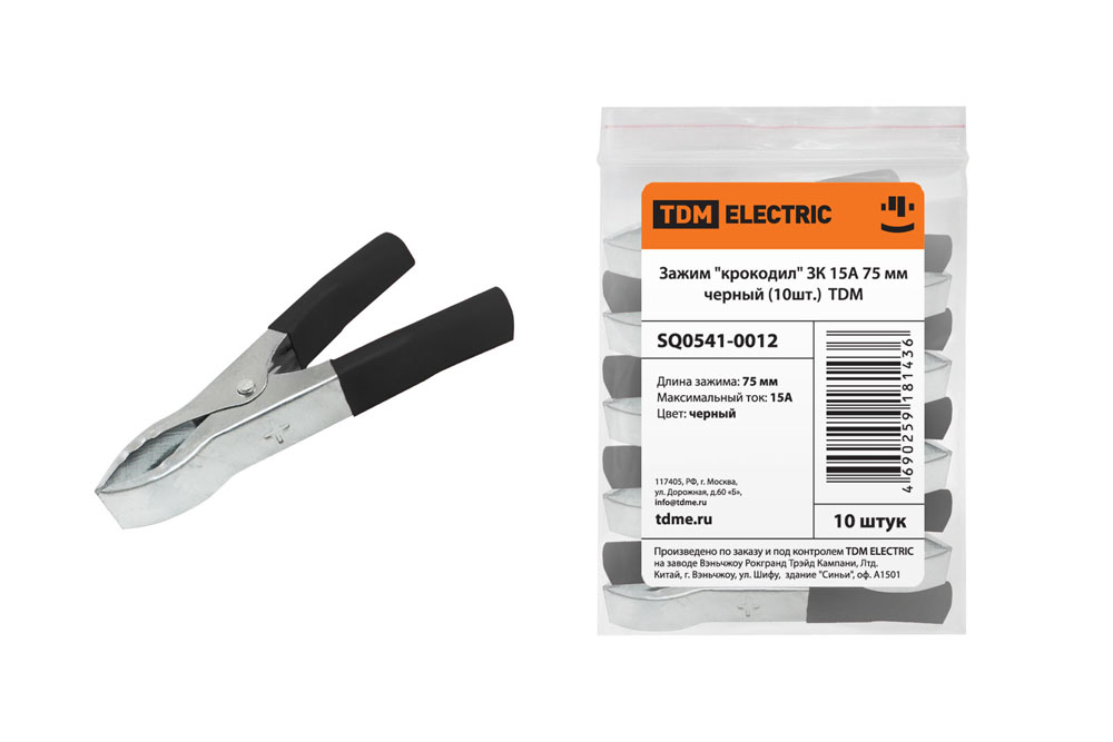 Зажим "крокодил" 15А 75мм черный (10шт) TDM ЗК 1/10/100