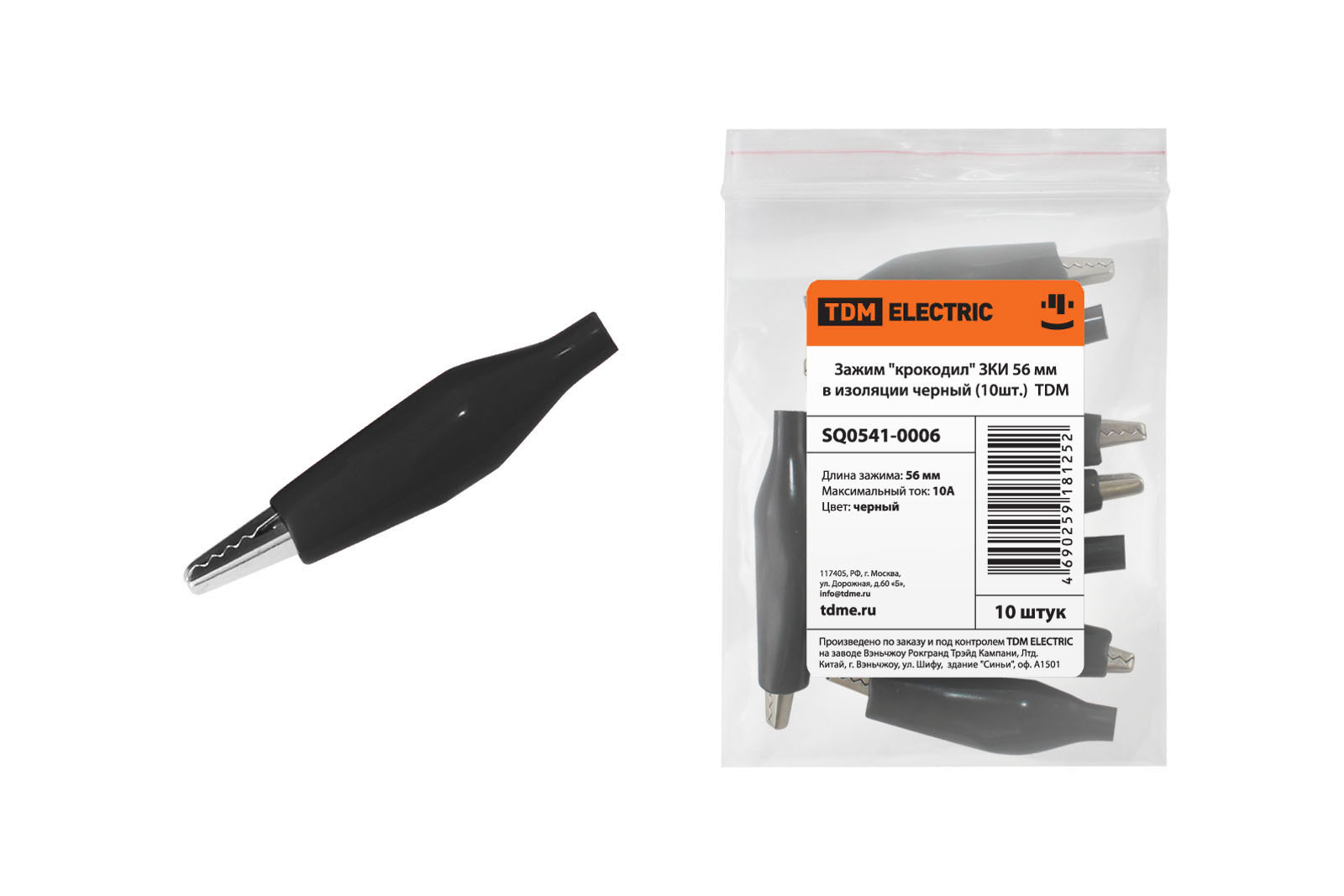 Зажим "крокодил" 10А 56мм в изоляции черный (10шт) TDM ЗКИ 1/250