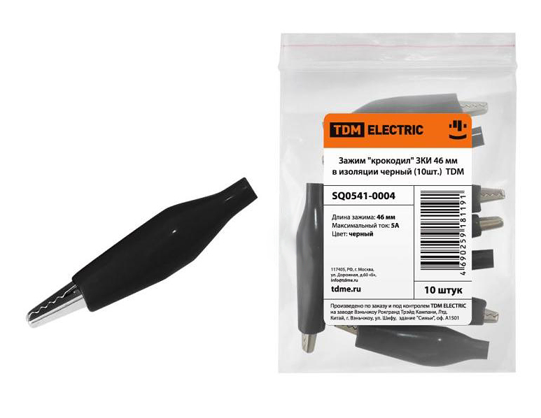 Зажим "крокодил" 5А 46мм в изоляции черный (10шт) TDM ЗКИ 1/10/500
