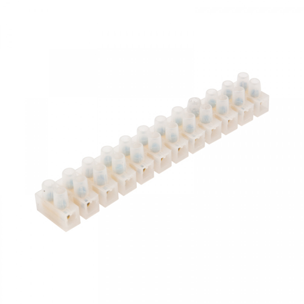 Диэлектрический корпус и латунная контактная группа с винтовыми зажимами  это простейшее электротехническое изделие, предназначенное для соединения проводников. Колодка редко используется одна, поэтому они собраны в секции по двенадцать штук.  Электротехническая компания EKF выпускает широкий ассортимент изделий для монтажа. Соединение проводников с сечением до 40 мм2 с использованием винтовых соединений позволяет получить надежный и долговечный контакт. Толстый слой прочного диэлектрика полностью исключает возможность замыкания контактных групп между собой или на монтажную панель. Резьбовое соединение устойчиво к вибрации, но требует периодической проверки и подтяжки. Это связано с текучестью материала проводников и устранимо только в соединениях с пружинной контактной группой. Наличие диэлектриков разных цветов позволяет сделать монтажную схему щитка легко читаемой.