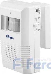 Звонок беспроводной/сигнализация FERON 005-D, 36 мелодий, цвет белый/серый, регулировка громкости - нет, шифрование сигнала - нет; БАЗА: 3*1,5V/AA, 65*34*100 мм,