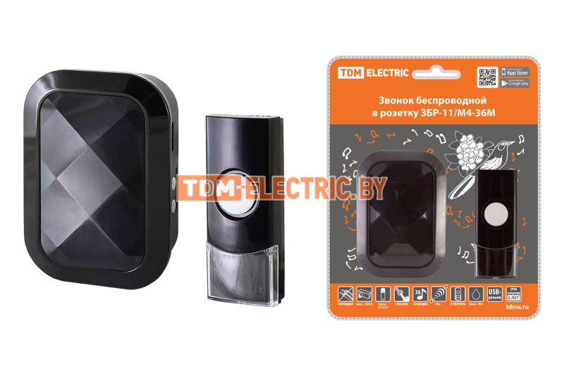 Звонок беспроводной в розетку ЗБР-11/М4-36М (кнопка IP44, AC 230В, многокодовый, USB) TDM /60